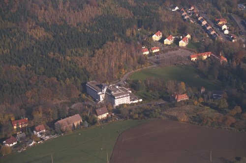 Berggießhübel, Gersdorfer Straße Median Klinik, im Hintergrund rechts der Ladenberg Foto: © Günter Wolf, Berggießhübel zurück